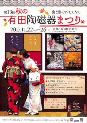「食と器でおもてなし」をテーマに、器はもちろん、紅葉・郷土・おもてなしなど、有田町の魅力を実感できるイベントです。秋のやきものめぐりをお楽しみください。