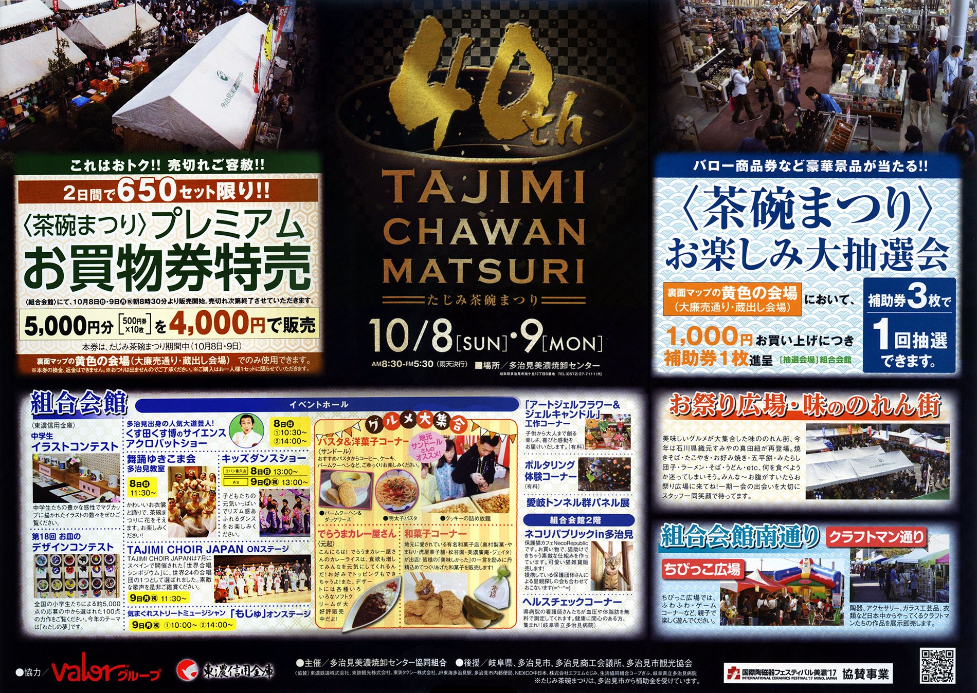 美濃焼の卸商社約40社が蔵出しセールや即売会を繰り広げるほか、クラフトマンの作品展示即売、全国の小学生による皿のデザインコンテストなど、多彩なイベントが催されます。