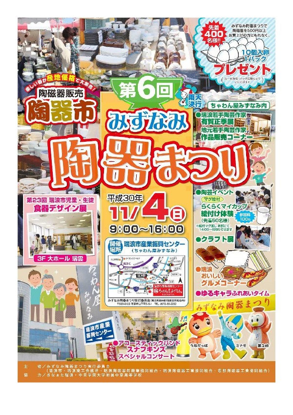 陶磁器直売のほか、地元陶芸家の作品コーナー、絵付け体験など、多彩な企画が展開されます。