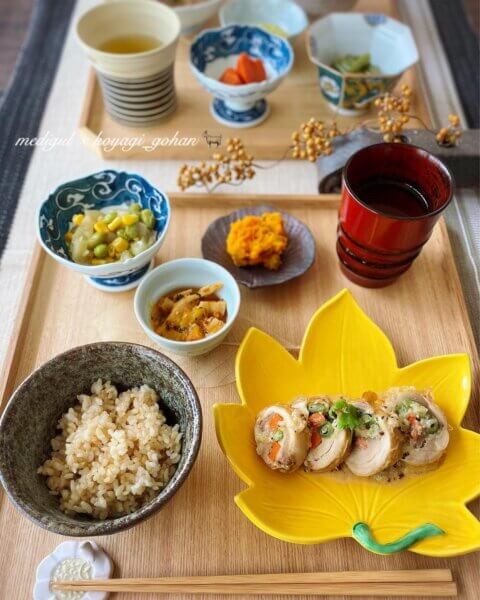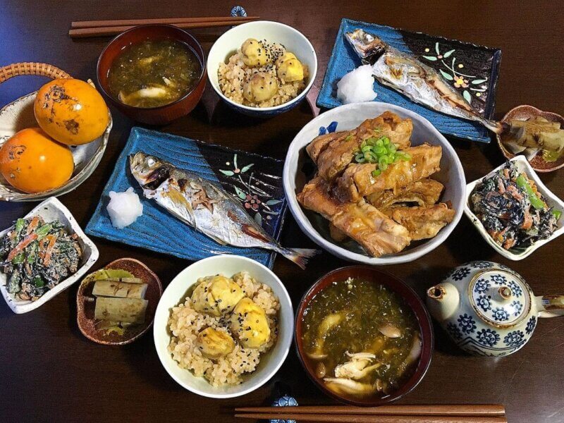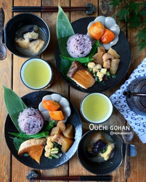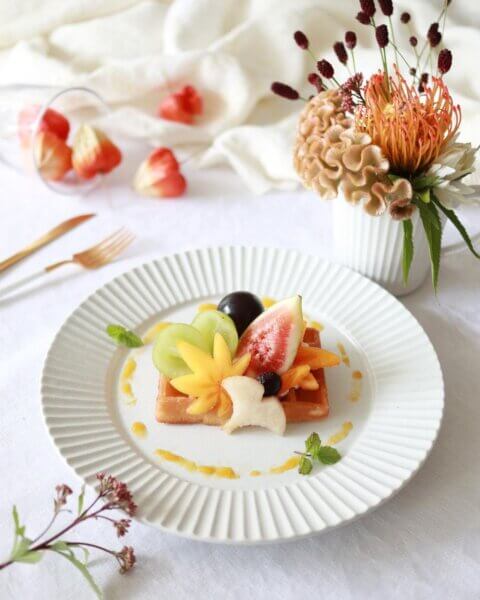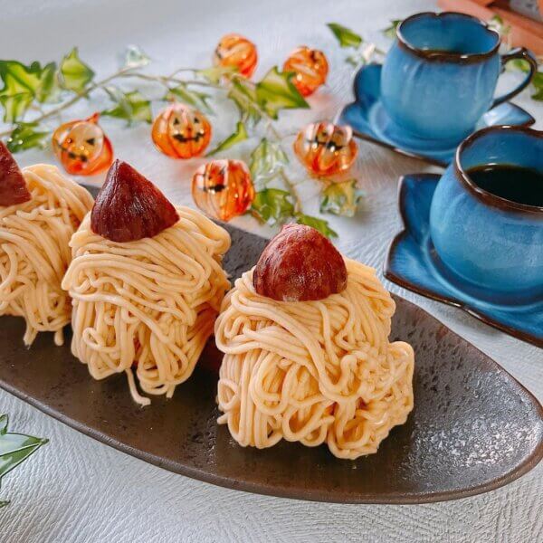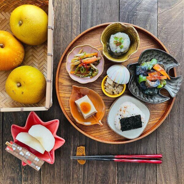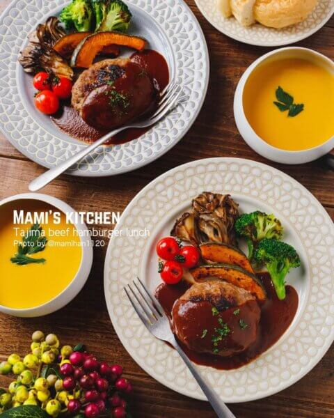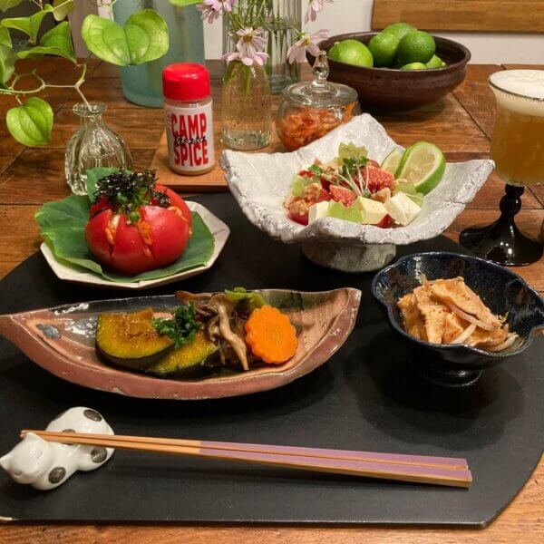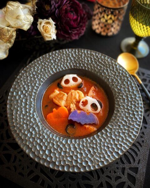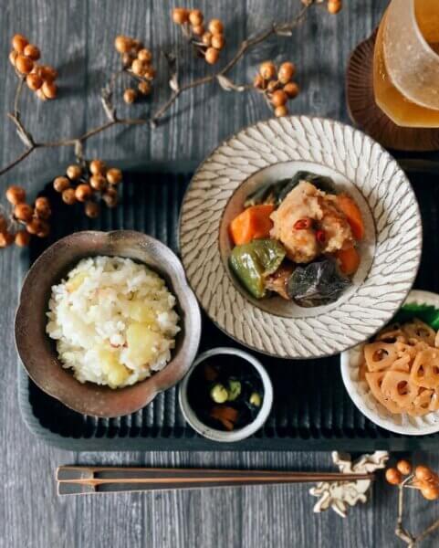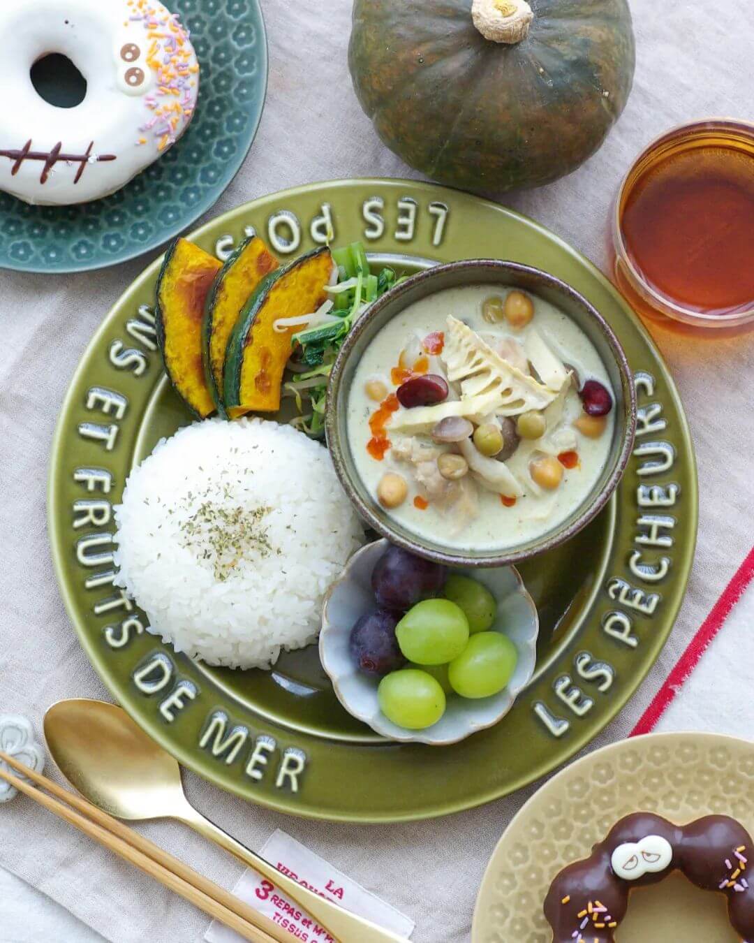 秋らしい食材が彩り豊かにバランス良く盛られたプレートが、「秋の味覚」というコンテストテーマにぴったりマッチした作品です。また、ハロウィーンを意識したユーモラスなドーナツが2つ、写真の端でちょこっと見えている構図と演出も、思わず微笑んでしまう出来映えです。